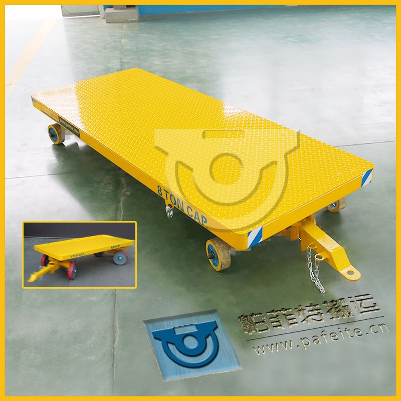 平板車拖車臺面為梁式結構、載重能力 強、使用壽命長,四輪聯動轉向,轉向 級靈活、轉彎半徑非常小,一動動四輪,臺面尺寸、載重量等根據客戶的要求定制,車輪材料耐磨性高、噴砂噴漆烘干處理、總體結構美觀、主要用于工廠、物流、港口、車站等行業,對于散裝物料、輕小型產品、化工、機械、冶金等等場合用途很廣,有效的節約了轉運成本、提升了轉運效率、降低了勞動強度,提高了安全性,是目前轉運車輛中 性價比較高的一款物流解決方案。