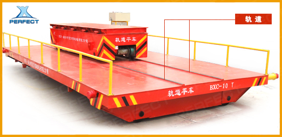 擺渡平車一般用于兩條或多條平行軌道之間的換軌,由上下兩層軌道平車疊加組成,地溝中行駛,臺面與地面平齊,且大車臺面上安裝有軌道,整車運行路線呈前后布置,大車橫向快速移動后能夠準確的停止、定位和接軌,小車在大車臺面軌道上呈縱向路線運行,實現小車換軌換位功能。擺渡式軌道平車不僅僅只是兩層,還可根據情況設計為三層或多層。