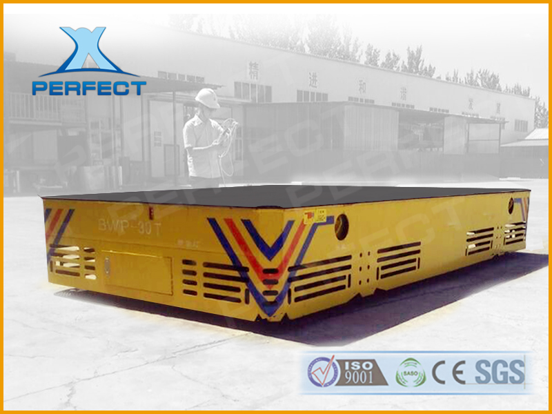 BWP:無軌膠輪電動平車是一種以蓄電池作為電源,電機減速機作為驅(qū)動系統(tǒng),實心包膠車輪直接在地面行走的轉(zhuǎn)運車,其運行不受限制,進口的車輪保證地面不受損壞,360°原地轉(zhuǎn)彎適應(yīng)更狹小的空間運行,360度無死角防護、遇人自動停止等功能,保證了運行過程中的安全問題。觸摸屏、搖桿操作等設(shè)計使操作更加人性化。全自動化無人操作的功能讓它更加智能,嫣然成為工業(yè)4.0時代的先驅(qū)者。適應(yīng)爬坡、防爆、粉塵等各種場合,150T大載重量的誕生,使其躍居車間搬運設(shè)備的一位,成為了“尊貴”的代名詞。