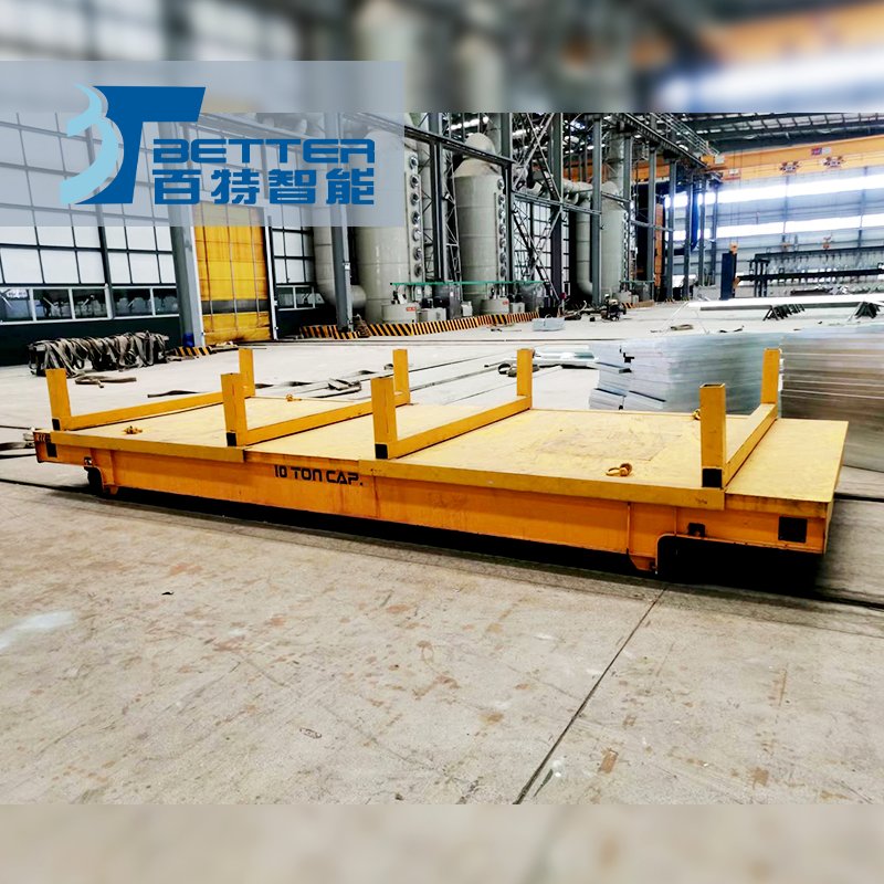 5t蓄電池電動平車的蓄電池安裝在內(nèi)部,電源通過電氣控制系統(tǒng),給直流牽引電機(jī)提供電力,使轉(zhuǎn)運(yùn)車平穩(wěn)啟動、停止、前進(jìn)、后退、調(diào)速等,該系列平車能夠在垂直軌道、l型軌道、S型軌道、弧形軌道及擺渡場合使用,噸位及尺寸可以非標(biāo)定制,該客戶定制的5噸電池平車作用于車間過跨使用。